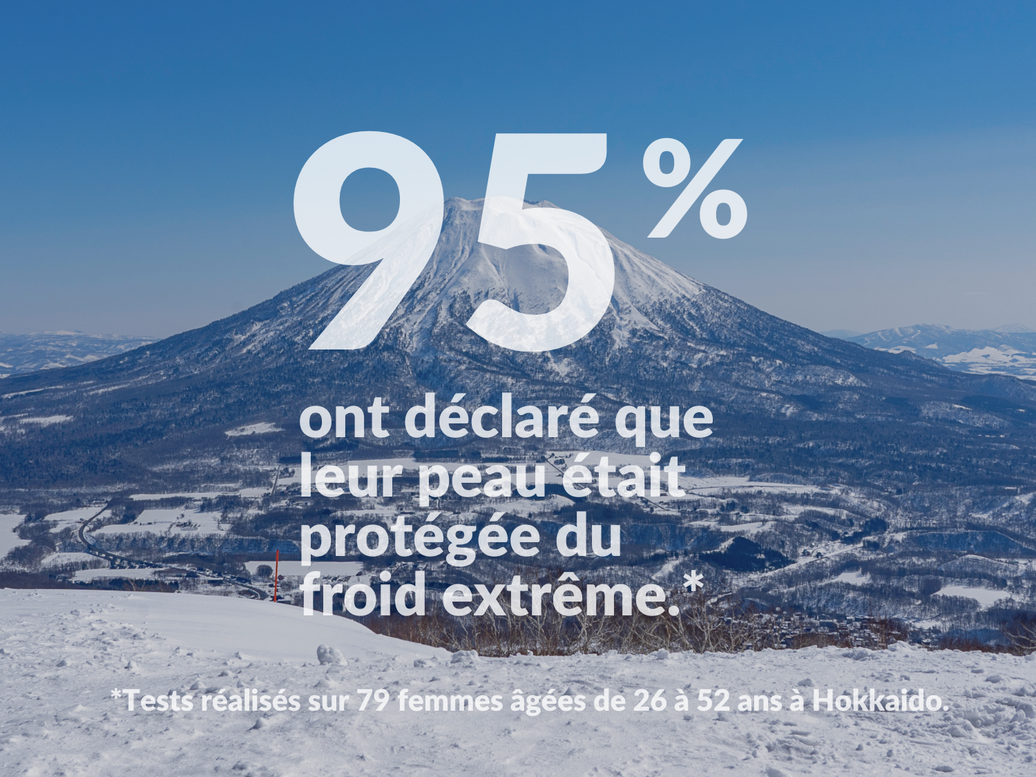Nous avons testé notre formule de crème hydratante sur des femmes à Hokkaido pendant l'hiver, où elles font face à des conditions météorologiques extrêmes—et les résultats ont été extrêmement positifs. Immédiatement, 95 % ont déclaré que leur peau se sentait protégée dans le froid extrême, 97 % ont déclaré que leur peau se sentait hydratée. Si c'est assez bon pour l'hiver à Hokkaido, c'est assez bon pour vous.