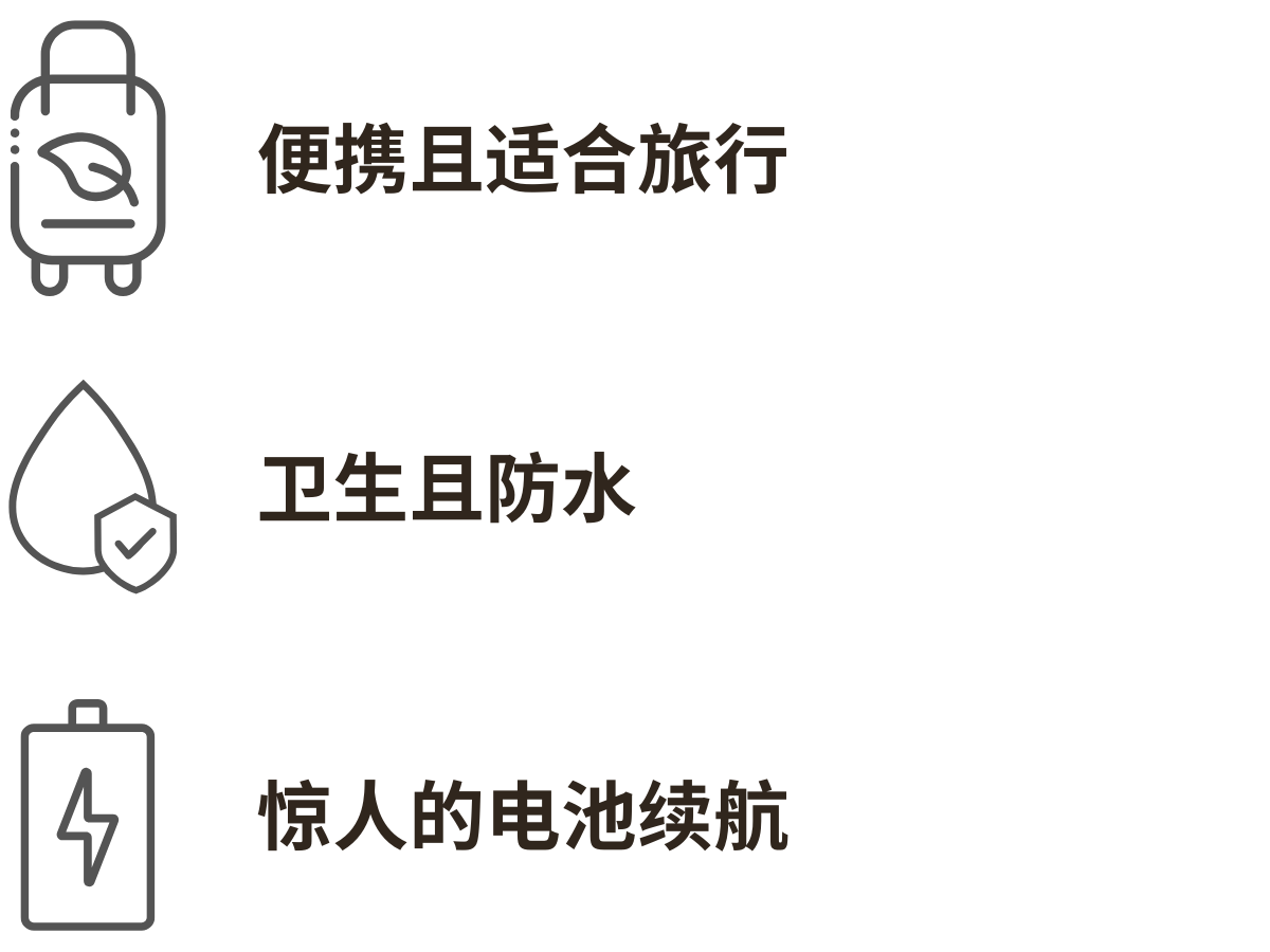 - 便携和旅行友好 - 方便的掌上尺寸,易于携带